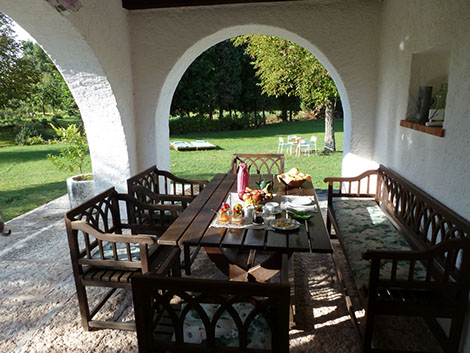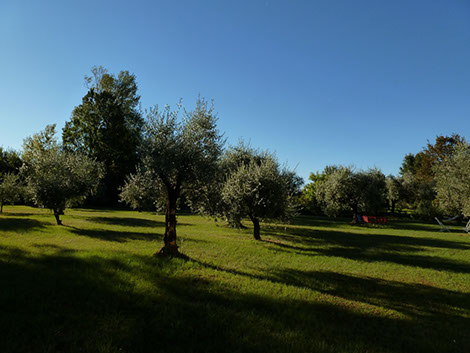 Das Grundstück (mit eigener Badegelegenheit) bietet genügend Raum, so dass sich jeder Teilnehmer nach Wunsch im Garten auch alleine zurückziehen kann.